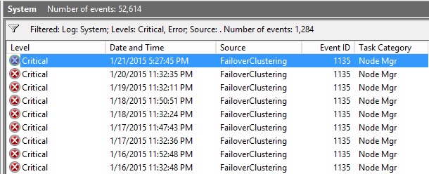 FailoverClustering – Event ID: 1135 – Cluster node ‘SERVER’ was removed from the active failover cluster membership. The Cluster service on this node may have stopped. This could also be due to the node having lost communication with other active nodes in the failover cluster.
